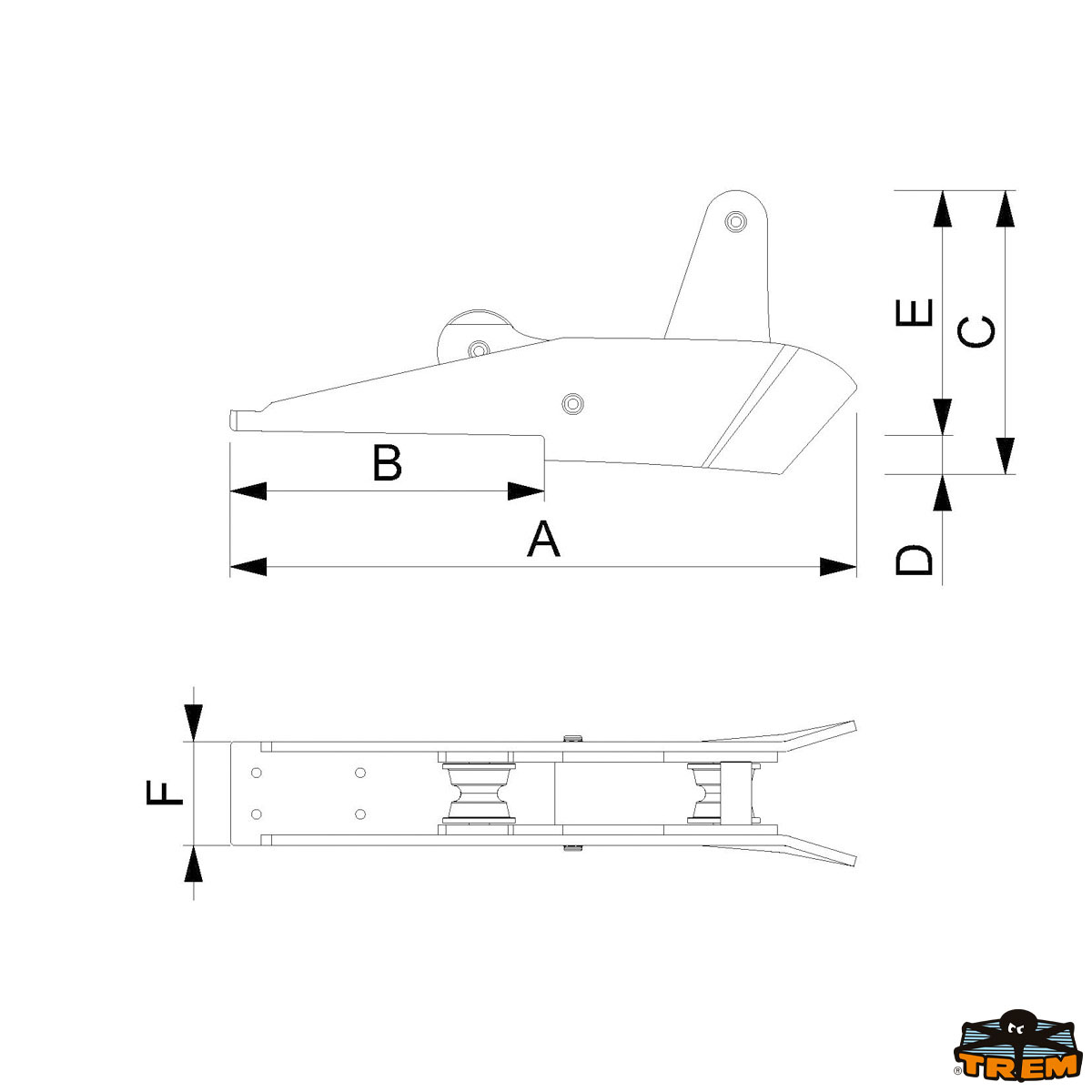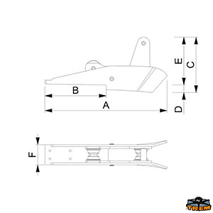 A mm: 416 B mm: 225 C mm: 205 D mm: 45 E mm: 160 F mm: 80 Rullo: N3560113 Per ancore max kg: 15 Peso kg: 3,500 |